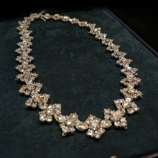 This platinum necklace comes with a fashionable and luxurious appearance. It is finely crafted with dazzling diamonds for a glamorous touch. This platinum diamond necklace will surely make you stand out from the crowd.
