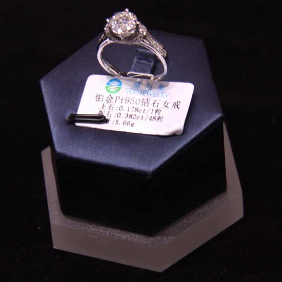 Shown here is an ornate diamond ring that is designed for sophisticated ladies. This exquisite ring features a centerpiece diamond supported by a four-prong setting. This fine ring makes a perfect gift for your partner.