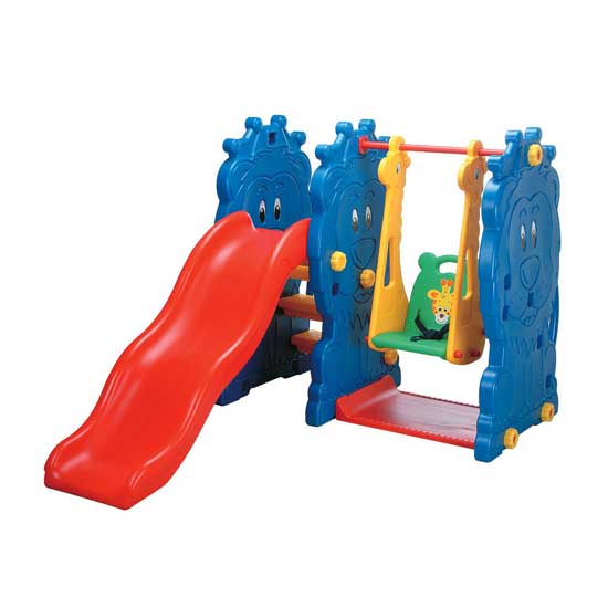 This is a playground equipment set designed for kids to have fun. It is combined with a lion slide and a giraffe swing. This pictured playground equipment will surely offer hours of fun.