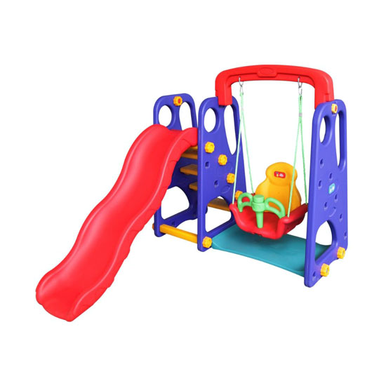 This is a fashionable toy playground set with a slide and a swing. It is made of quality plastic for a long service life. This plastic toy set offers hours of fun to young children.