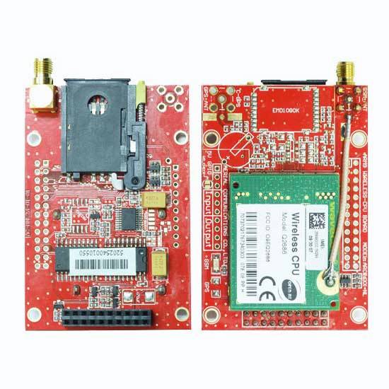 This plug-in board is an ARM9 wireless CPU® board. It is equipped with an open AT® operating system with high-performance native execution. It has an ARM 9 processor with 104MHz.