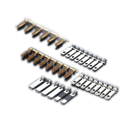 Pictured is a series of plug pins with exceptional conductivity. They are finely made with durable constructions for lasting use. These plug inserts are widely used for air-conditioner, refrigerators, washing machines, computers and many other household appliances, as well as automotive electric products.