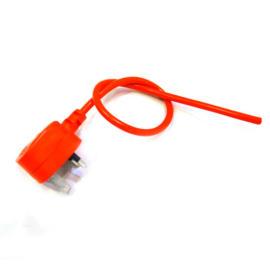 The showcased plug and connector boasts a red jacket that gives rugged construction and exceptional durability. The plug is designed with 3 legs for connection. This plug and connector is an ideal addition to any household.