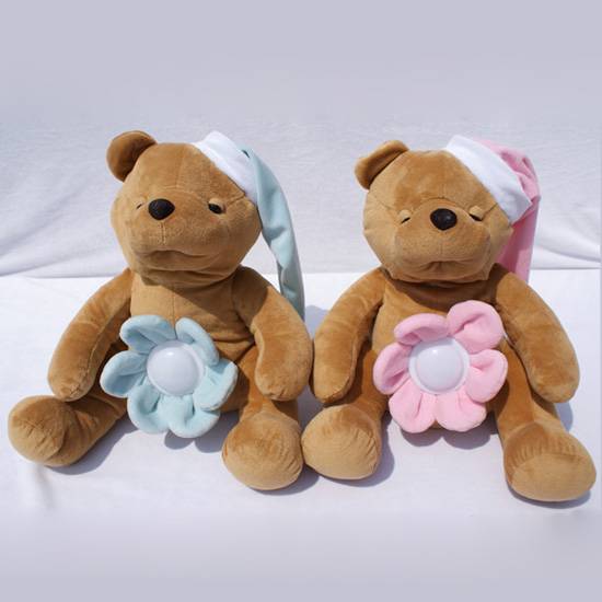 Featured is a set of lovely plush bears. Each of them wears a pajama hat and the front is embellished with an eye-catching fabric flower. The white flower pistil is luminescent in the dark. It is made of quality materials and offers great comfort for hugging. Children would definitely love these adorable plush bears.