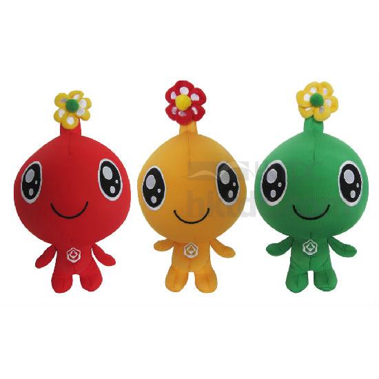 Demonstrated is a set of 3 plush toys in different bright theme colors. Featuring a big head, sparkling eyes and an adorable smile, these mascots have a flower adorned on the head for added cuteness. Winning everyone’s heart effortlessly, this set provides a great gifting idea for rewarding your kids.