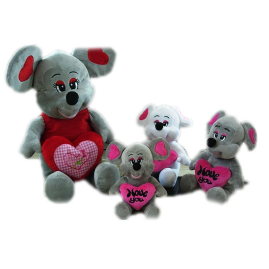 Here comes a family of adorable plush mice that carry embroidered plush hearts in their front. The stuffed mice are made of quality fabric that feels soft and comfortable. They are excellent toy for children to hug and play with.