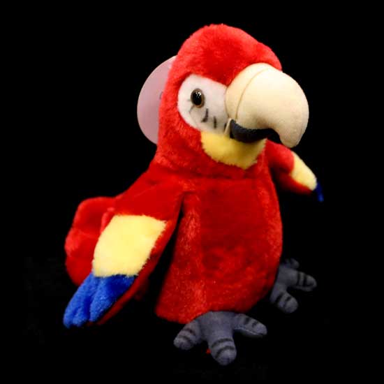 This plush toy features the design of a red parrot. The battery operated plush parrot is able to record and play sounds and move its body. The plush parrot a lovable character to play with, encouraging fun and inspiration.