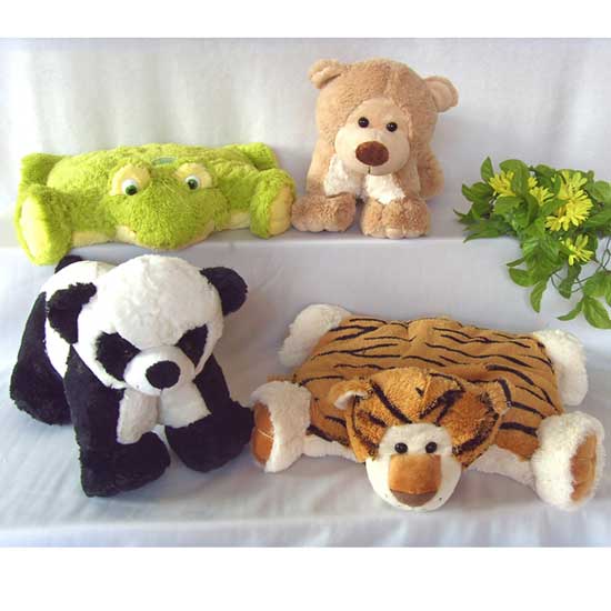 Highlighted is a series of plush toys featuring a lovely animal theme. It includes a bear, a turtle, a tiger and a panda, all made of soft plush fabrics. The adorable design makes these toys a great companion for children.