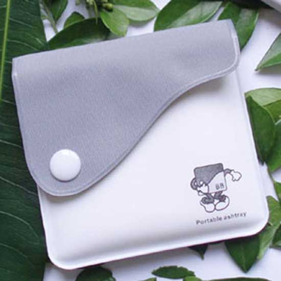 This pocket ashtray features a flap closure with snap fasteners. It comes in shades of purple and is decorated with a lovely pattern for a touch of style. The compact design also makes it easy to bring along.