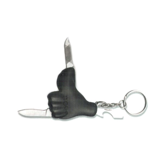 This pocket knife is attached to a key ring for excellent portability. Three separate knives can be stowed inside the holder for absolute safety. The holder in a thumbs-up shape is extraordinarily unique and chic.