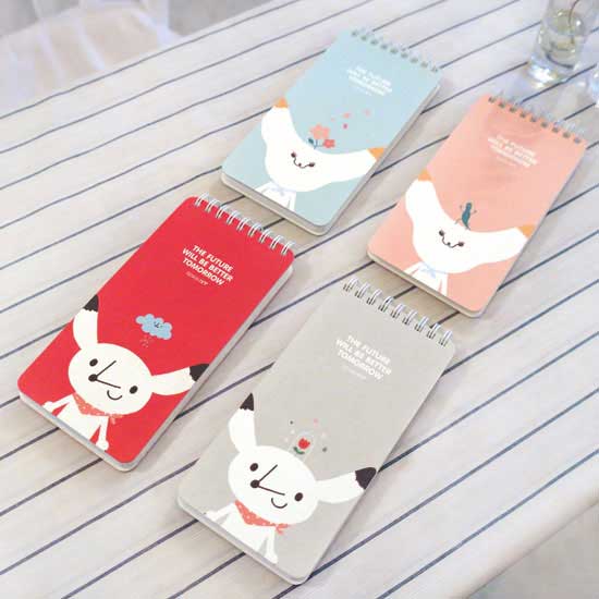 This pocket notebook features an adorable cartoon character on the colored background. It is made of eco paper and is top twin-ring bound. There are 6 designs available for your selection.