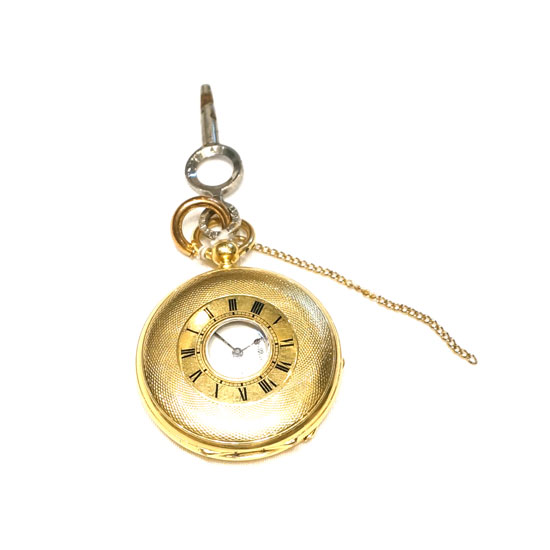 This is a pocket watch that is made of 18K yellow gold and shimmers with a high-gloss finish. It is well designed to deliver reliable and high-precision performance. The round dial face comes with two hands and a Roman numeral display.