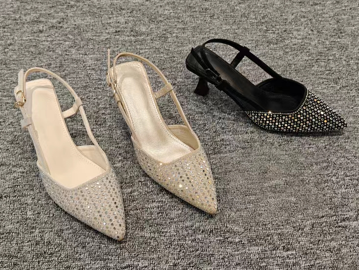 • The toe is adorned with an abundance of crystal-clear rhinestones, forming exquisite patterns that add brilliance to every step