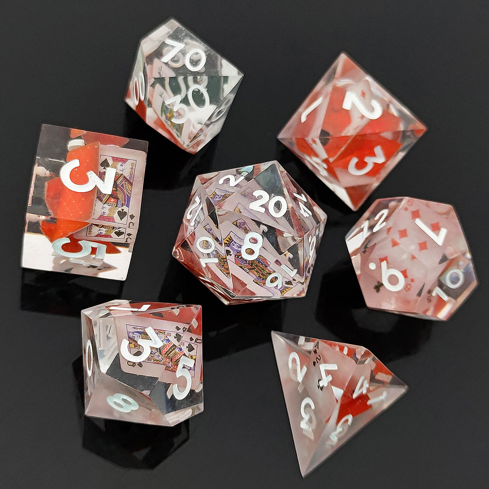 Poker card inside resin sharp edge dice