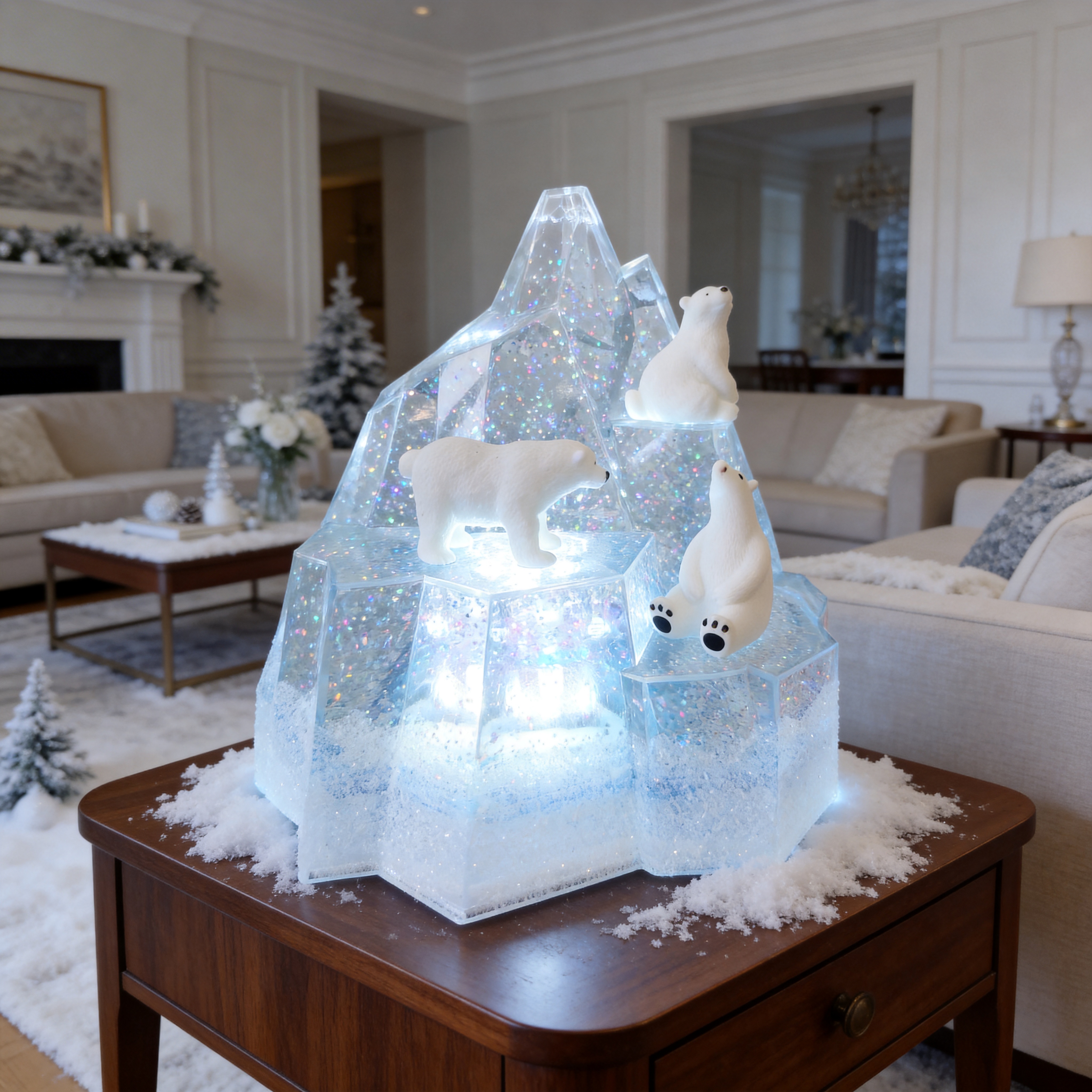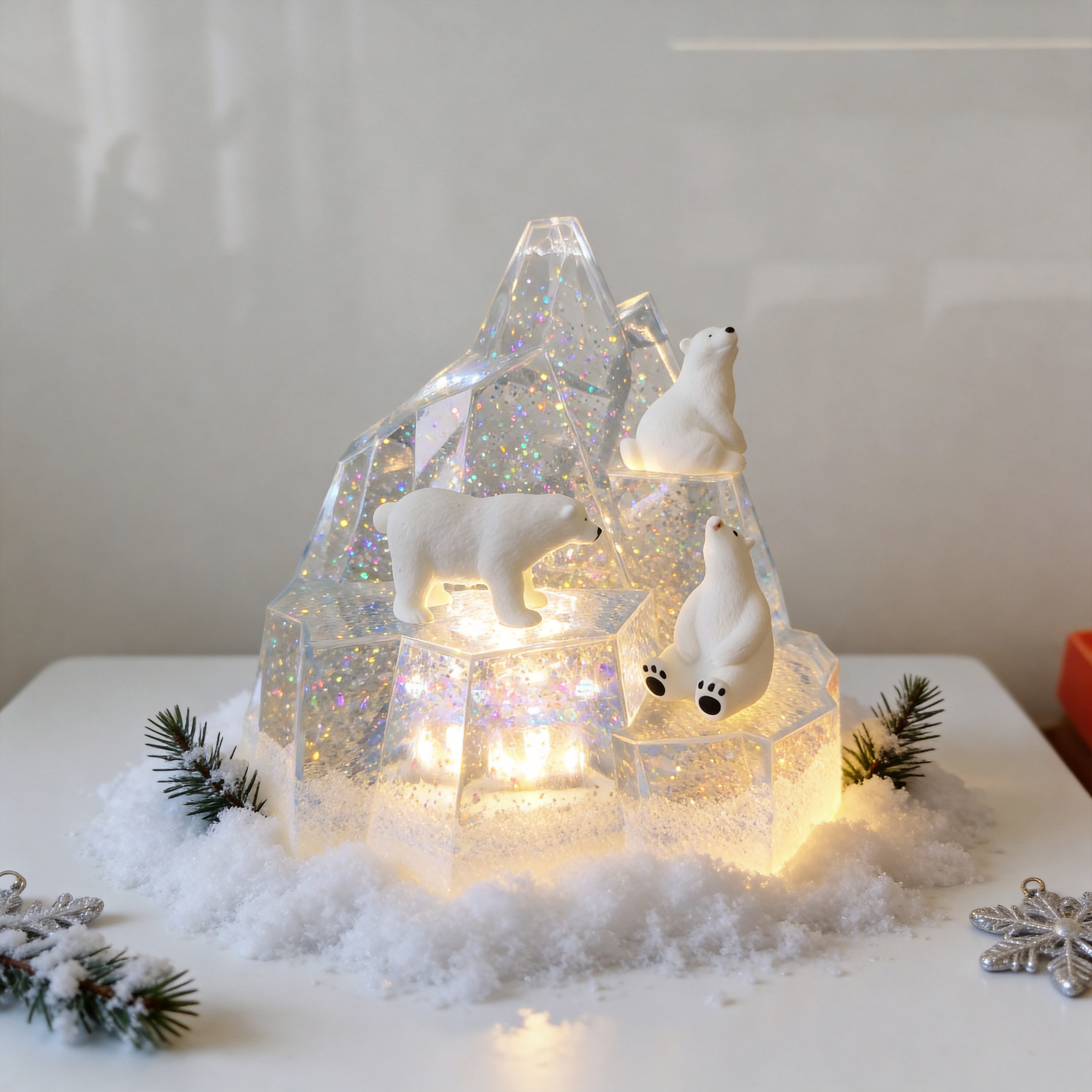Sparkling Glitter Effect – Shimmering glitter creates a dreamy snow-like atmosphere