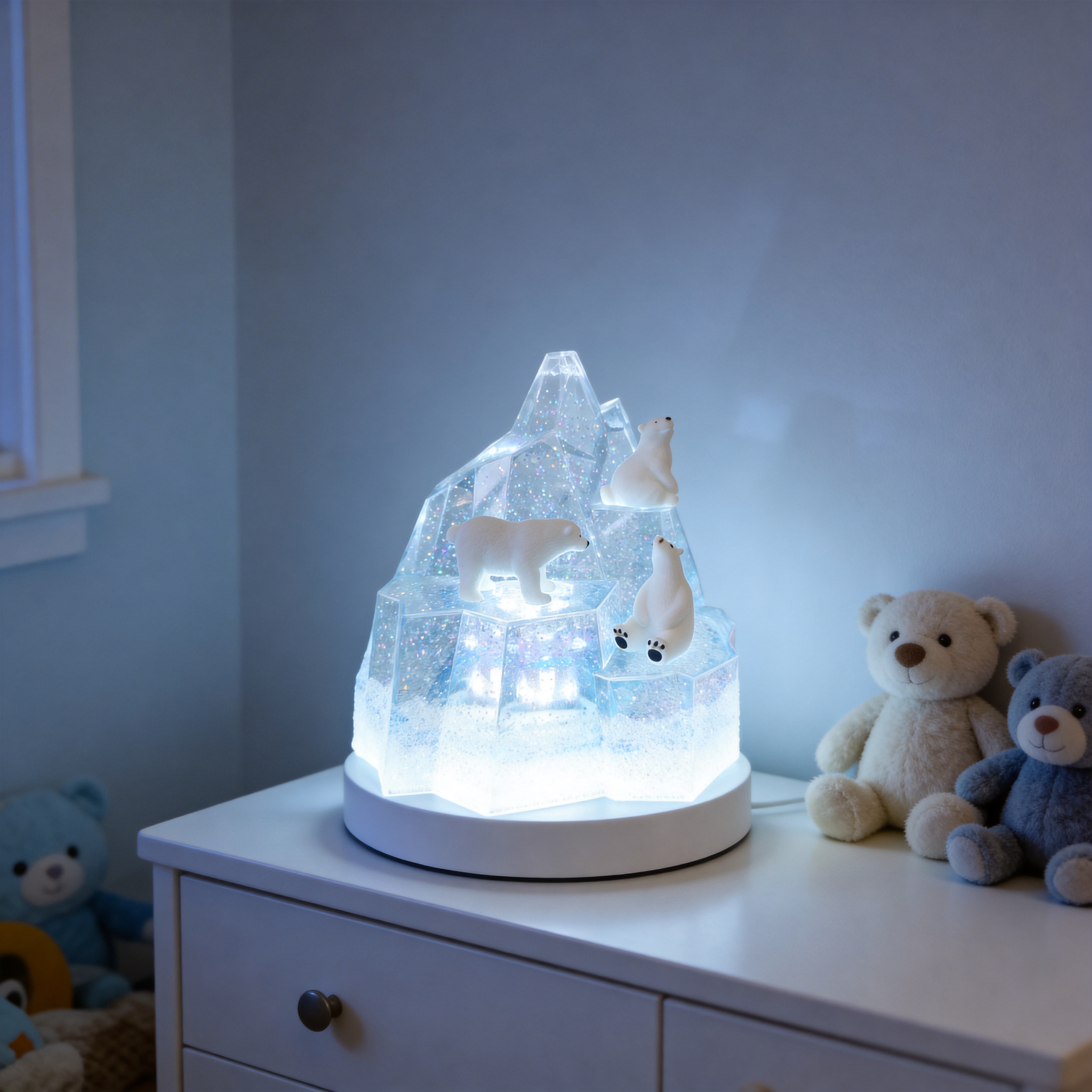 Cool LED Lighting – Soft icy blue glow enhances a calm and cozy vibe