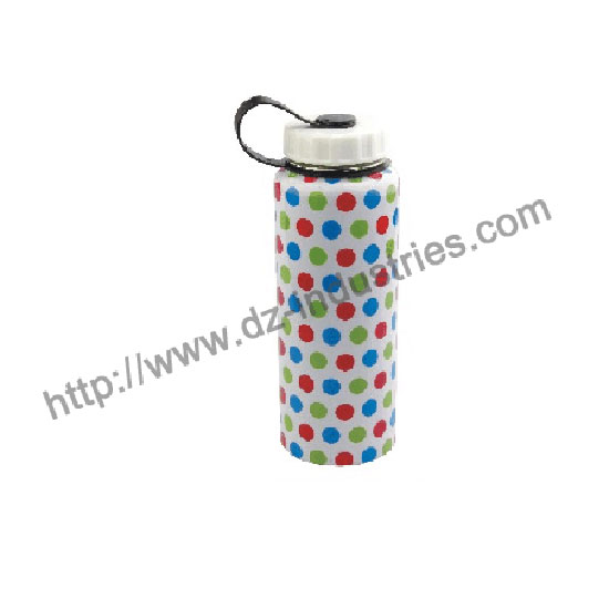 This is a 1,000ml water flask in quality stainless steel. The colorful polka dots add a funky accent to the flask. Featuring a spill-proof lid, this stainless steel flask is ideal for travel use.