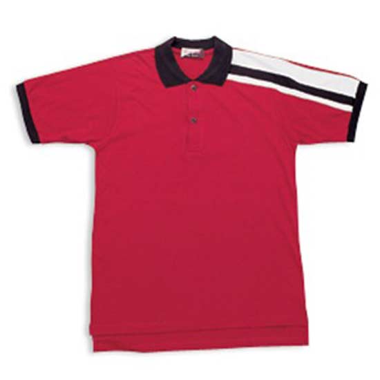 The short-sleeve polo shirt comes in a striking red finish with white and black stripped patterns on the left shoulder for a touch of uniqueness. Being soft and comfortable, this fashionable polo shirt makes a great addition to your summer wardrobe.