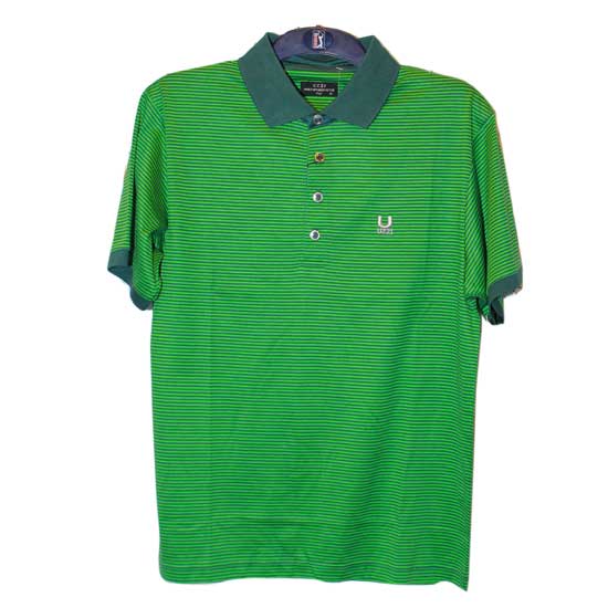 This pictured polo shirt comes in a dominated green with thin black streaks. The pure cotton composition ensures a comfy touch on the body. This cotton polo shirt helps to interpret your sporty side with style.