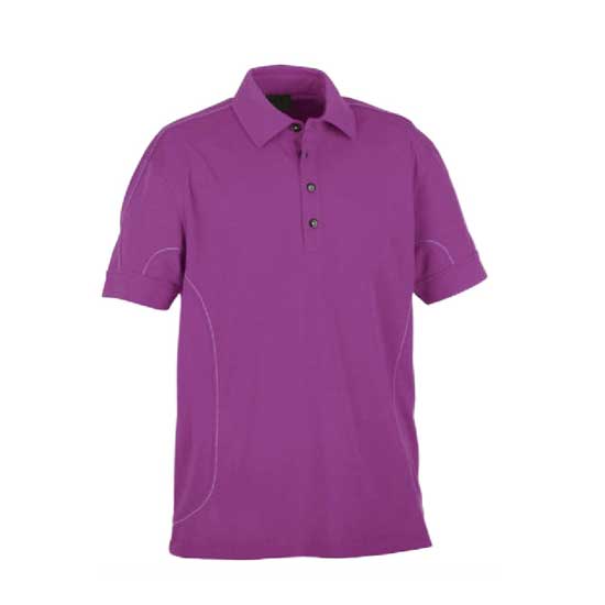 This polo shirt in purple is highlighted with light purple hued lines for a fashionable touch. It is made of 100% polyester for maximum coziness. This short-sleeved polo shirt is great for summer days.