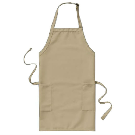 Demonstrated is a classy bib apron in bright colored appearance.