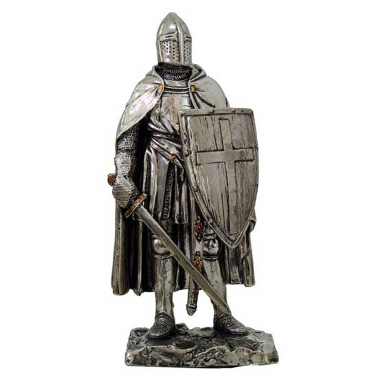 The poly nickel-plated crusader is done with fine workmanship. It is crafted with a deliberate faded effect for an antique feeling. The crusader also stands on a rough surface.