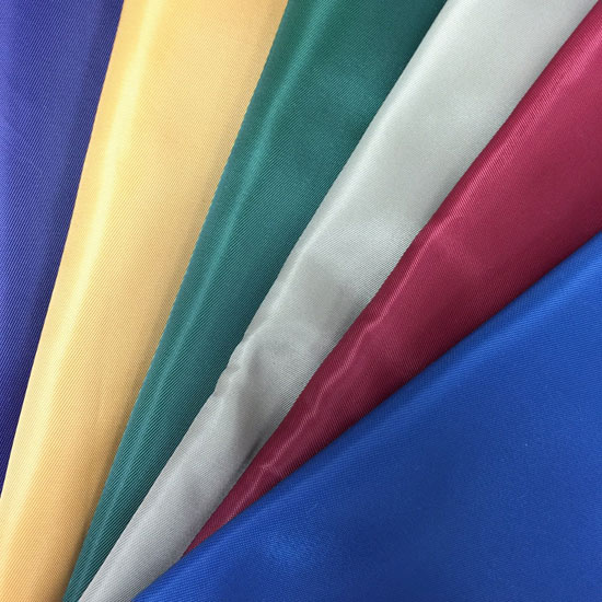 This poly twill fabric comes in a bright color. It can be printed with customized brand names and logos for promotional purposes. This fabric is ideal for handbag and luggage linings with a PU coating.