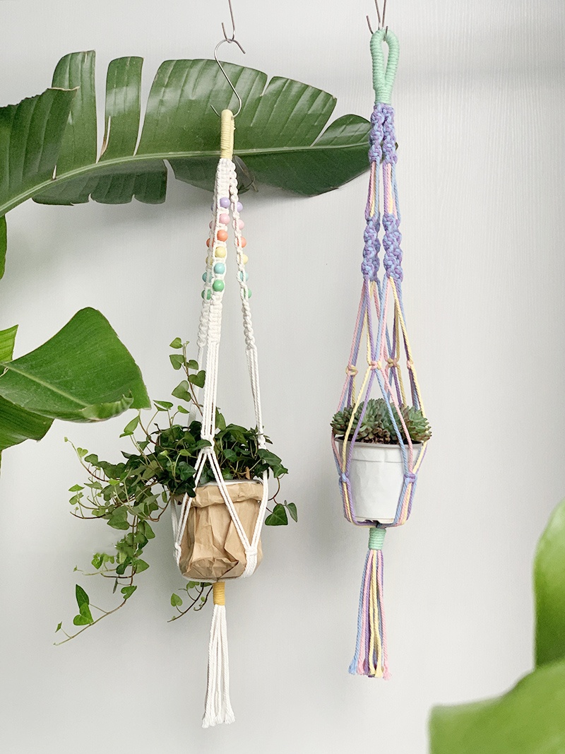 Polychrome Wood Bead Decoration for Handmade Cotton Macrame Plant Hanging Baskets Indoor Plant Hanging Hanger