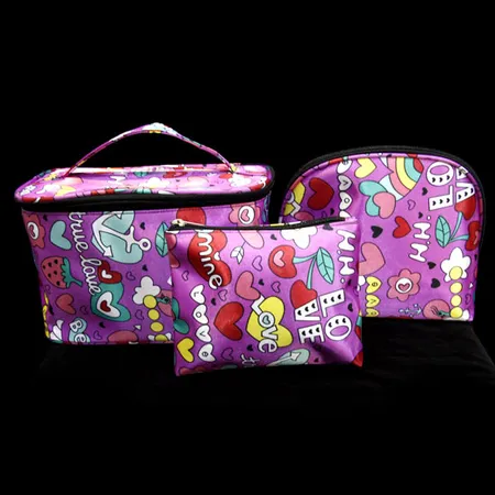 Showcased is a beautiful series of cosmetic bags for ladies. The bags feature fabric shells coming with colorful prints. The bags make a fashionable helper to store ladies’ make-up tools.