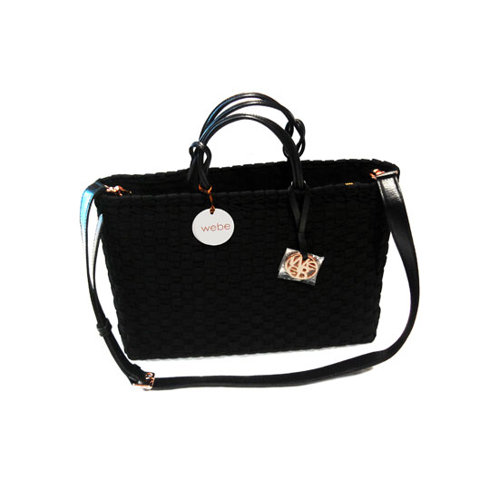 This is a black handbag made of quality polyester. It comes with durable handles and an adjustable strap for added convenience. This handbag is suitable for both women and men.