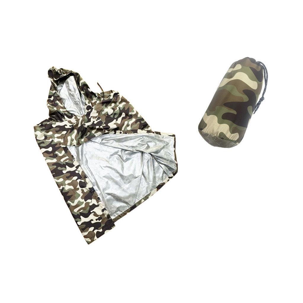Polyester Hooded Rain Poncho in Camo Pattern with Drawstring Storage Bag includes the following features :
