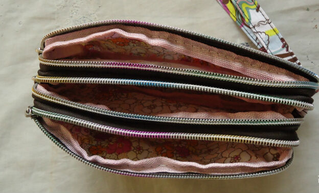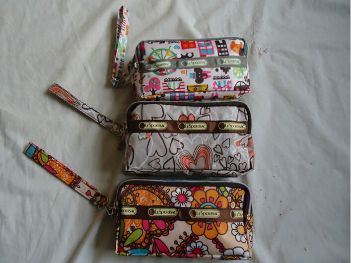 Polyester purse displayed is made of polyester with silk printing flower logo