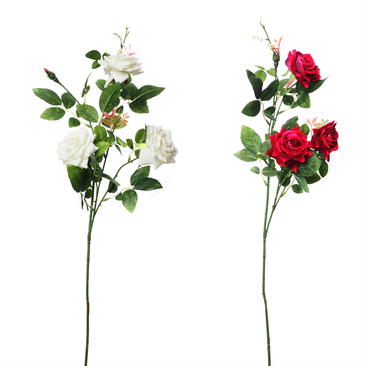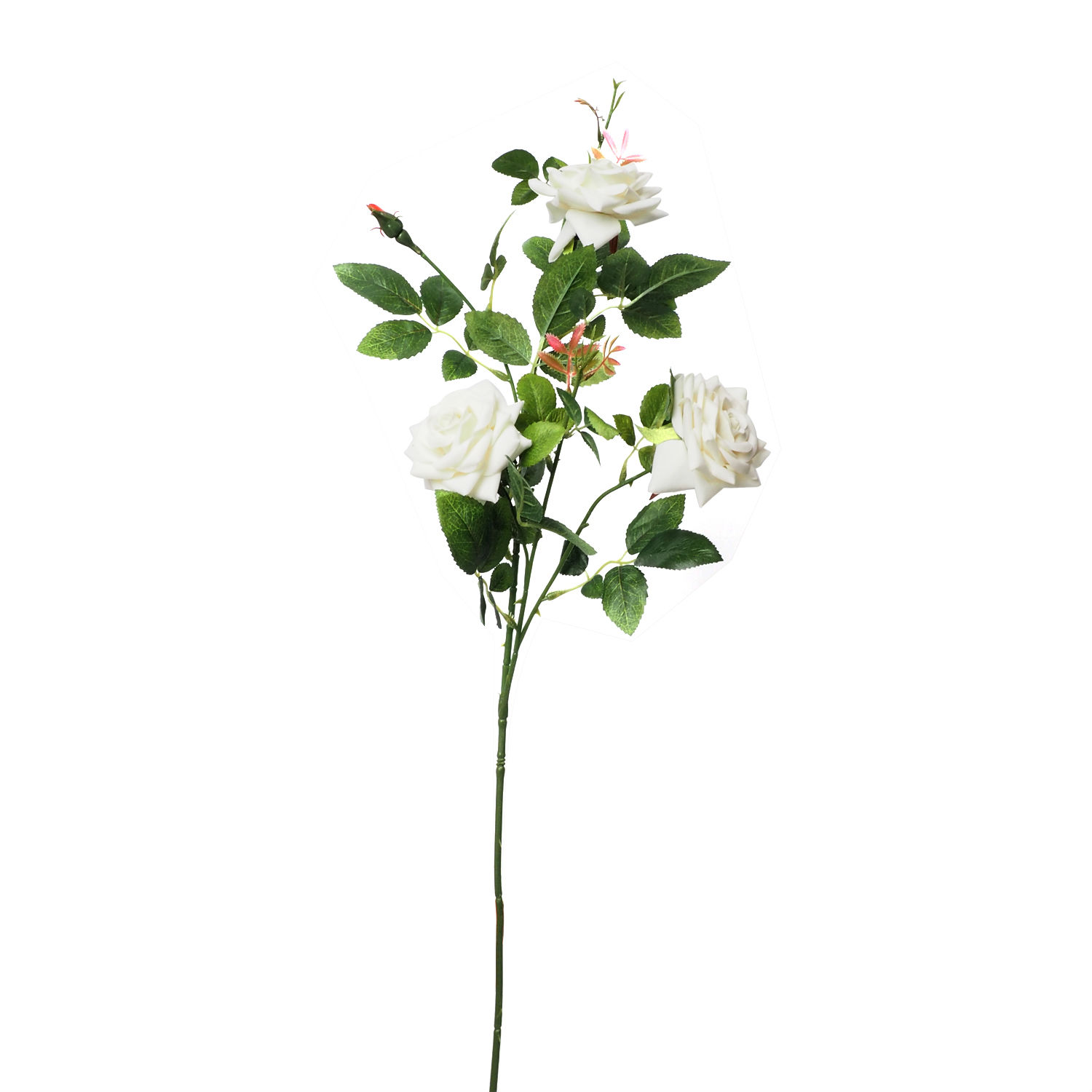 This flourish spray comes with few rose buds and a textured stem for a realistic look and touch. Flaunting an elegant shade in off white, this spray goes great in a vase on its own or as a perfect accent to a bouquet. Made of polyester for long durability, it allows your space to look bright and lively year round.