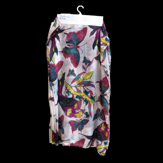 This printed scarf is well made of high-quality polyester. The butterfly print adds a refined accent to the scarf. This polyester scarf is easy to mix and match.
