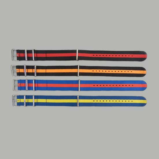These polyester watch bands are accented with contrasting stripe patterns. The top-quality watch bands are extremely durable. The colorful watch bands will brighten up your casual look.