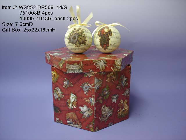 • Polyfoam ball with Christmas pattern with 14pcs with size in 7.5Dcm.