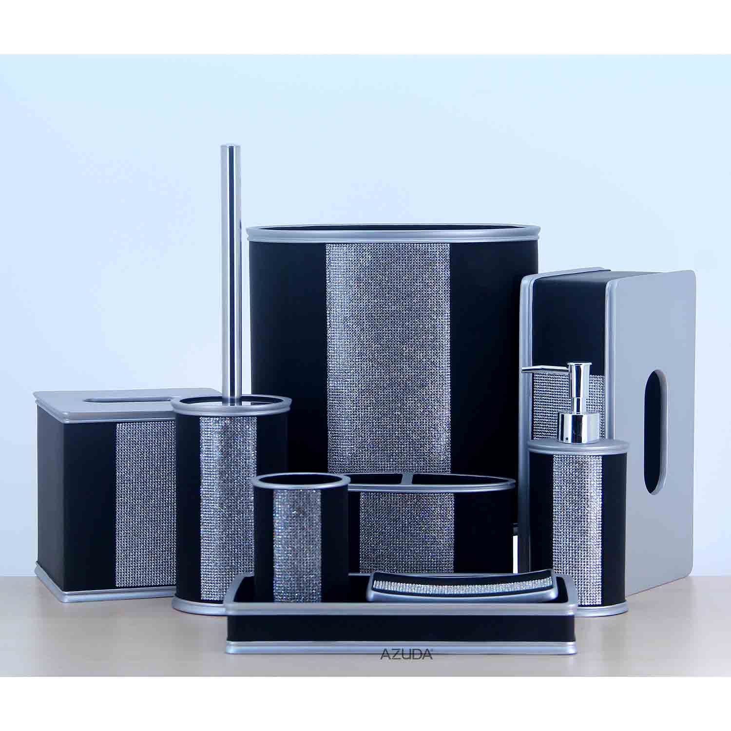 Polyresin Bath Accessories Set W/Diamond Design In Black