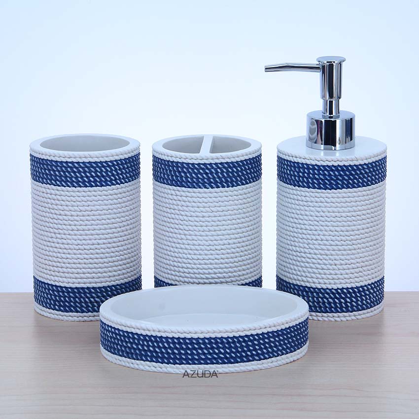 POLYRESIN BATHROOM ACCESSORIES SET W/HEMP ROPE DESIGN