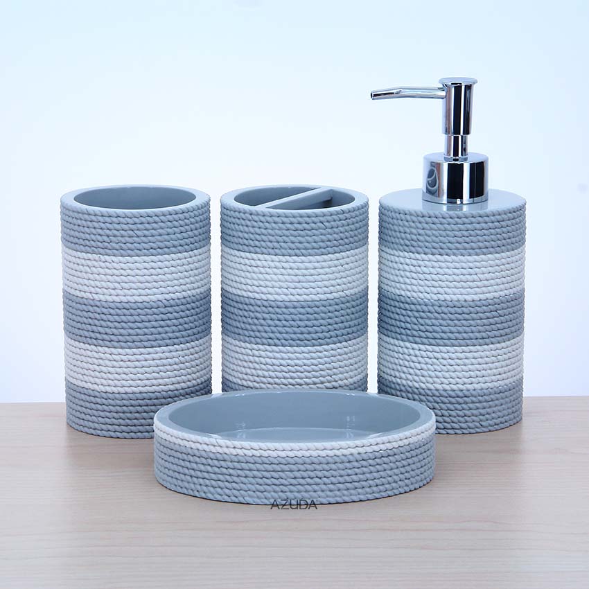 POLYRESIN BATHROOM ACCESSORIES SET W/HEMP ROPE DESIGN
