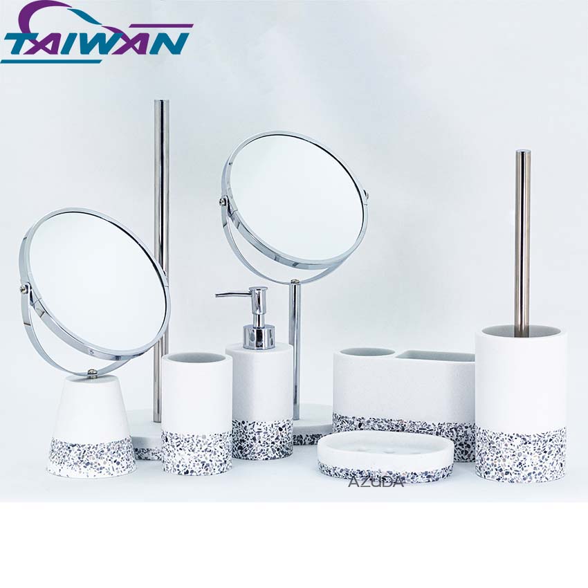 Polyresin Bath Accessories Set W/Terrazzo Base