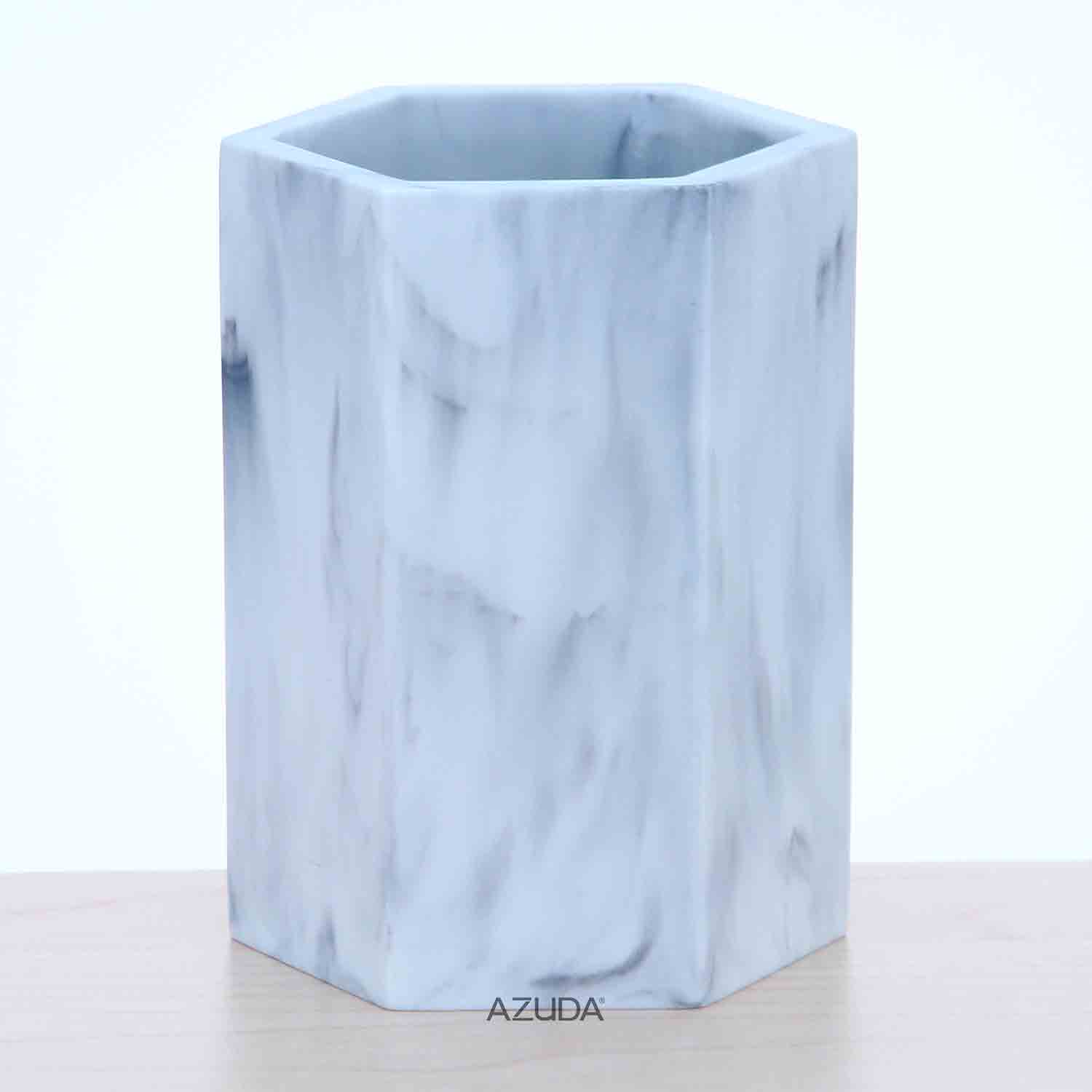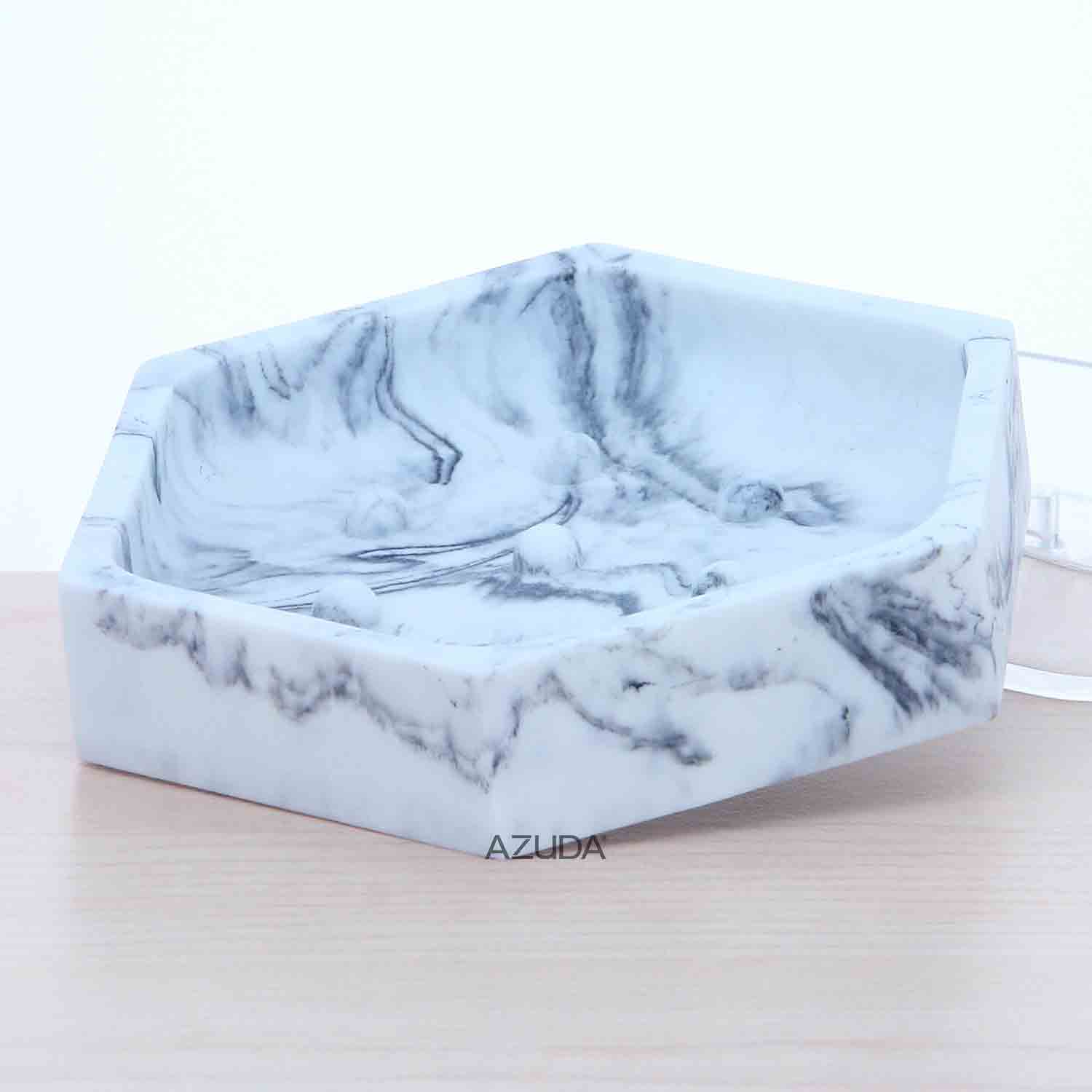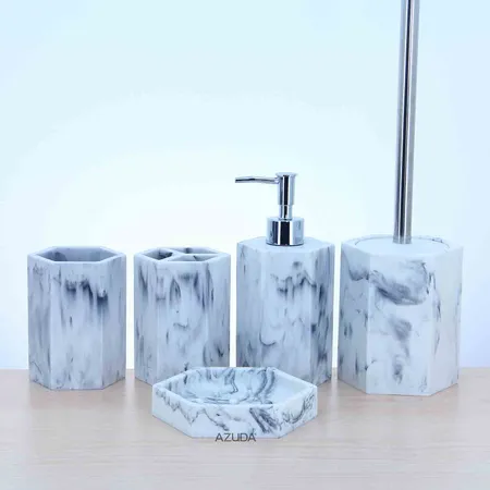 Polyresin Bathroom Accessories Set Hexagon Design W/Marble Effect