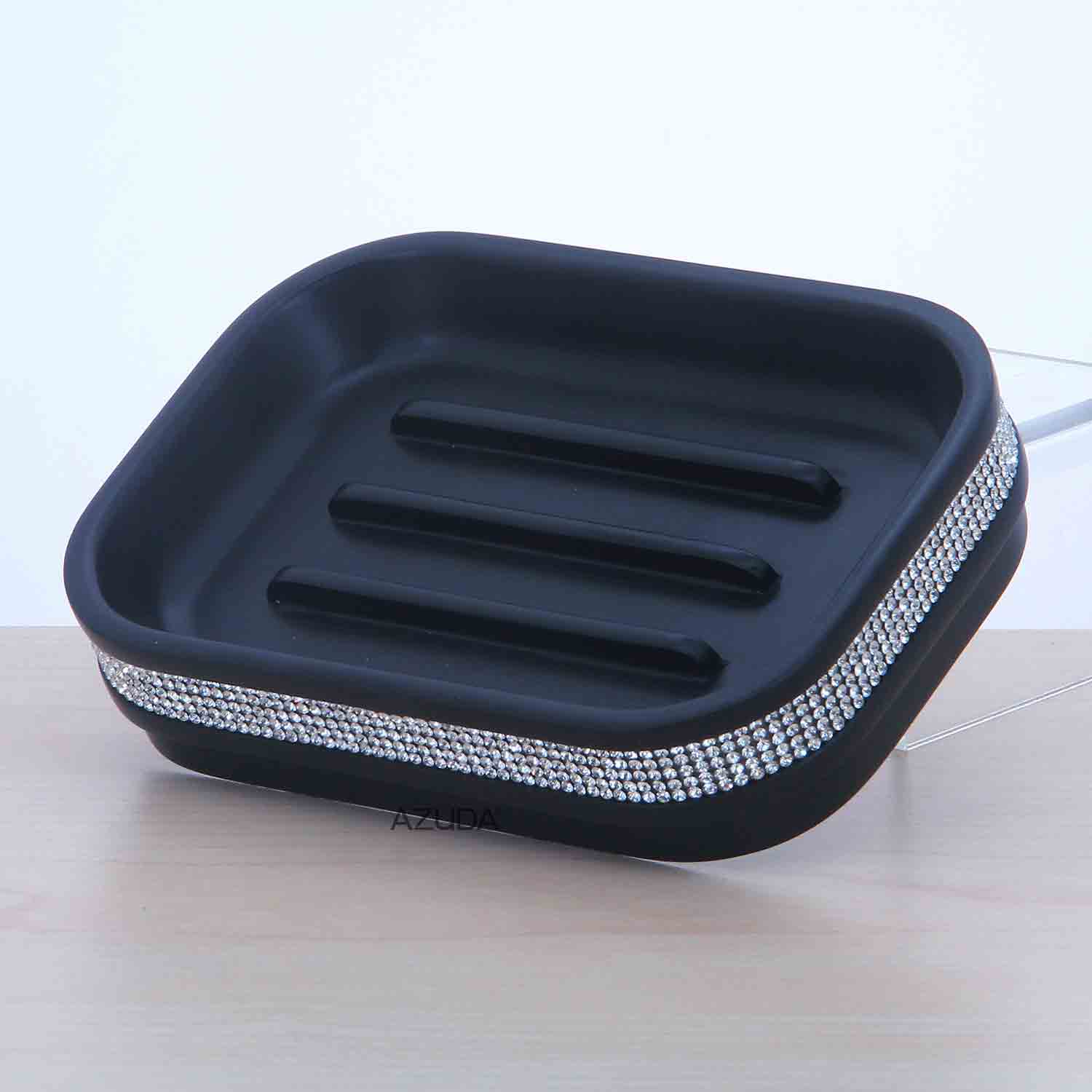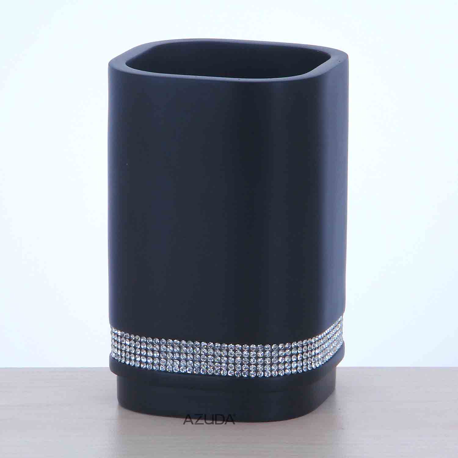 POLYRESIN BATHROOM ACCESSORIES SET IN BLACK W/DIAMOND DESIGN IN SQUARE ROUND SHAPE