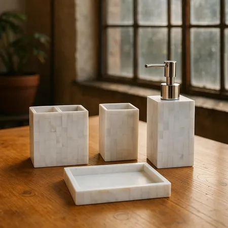 POLYRESIN BATHROOM ACCESSORIES SET PEARL SHELL DESIGN