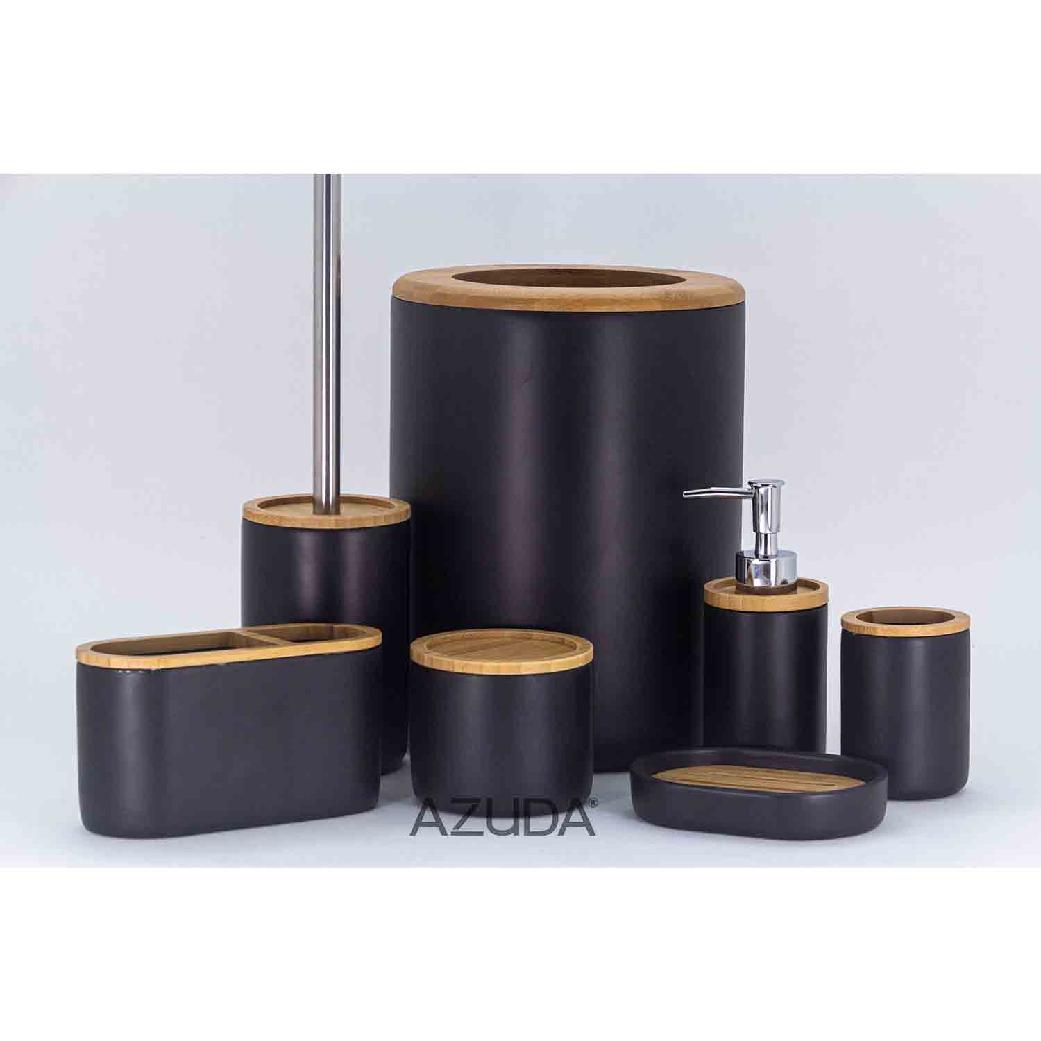 Polyresin Bath Accessories Sets In Black & Bamboo Top