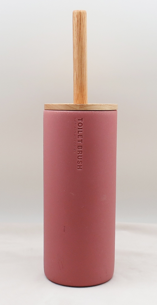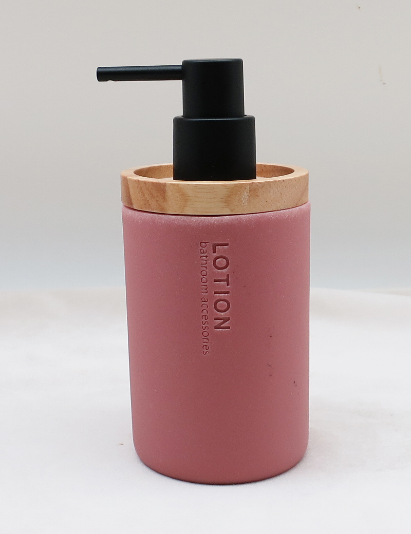 Polyresin Bath Accessories In Pink W/Bamboo Lid