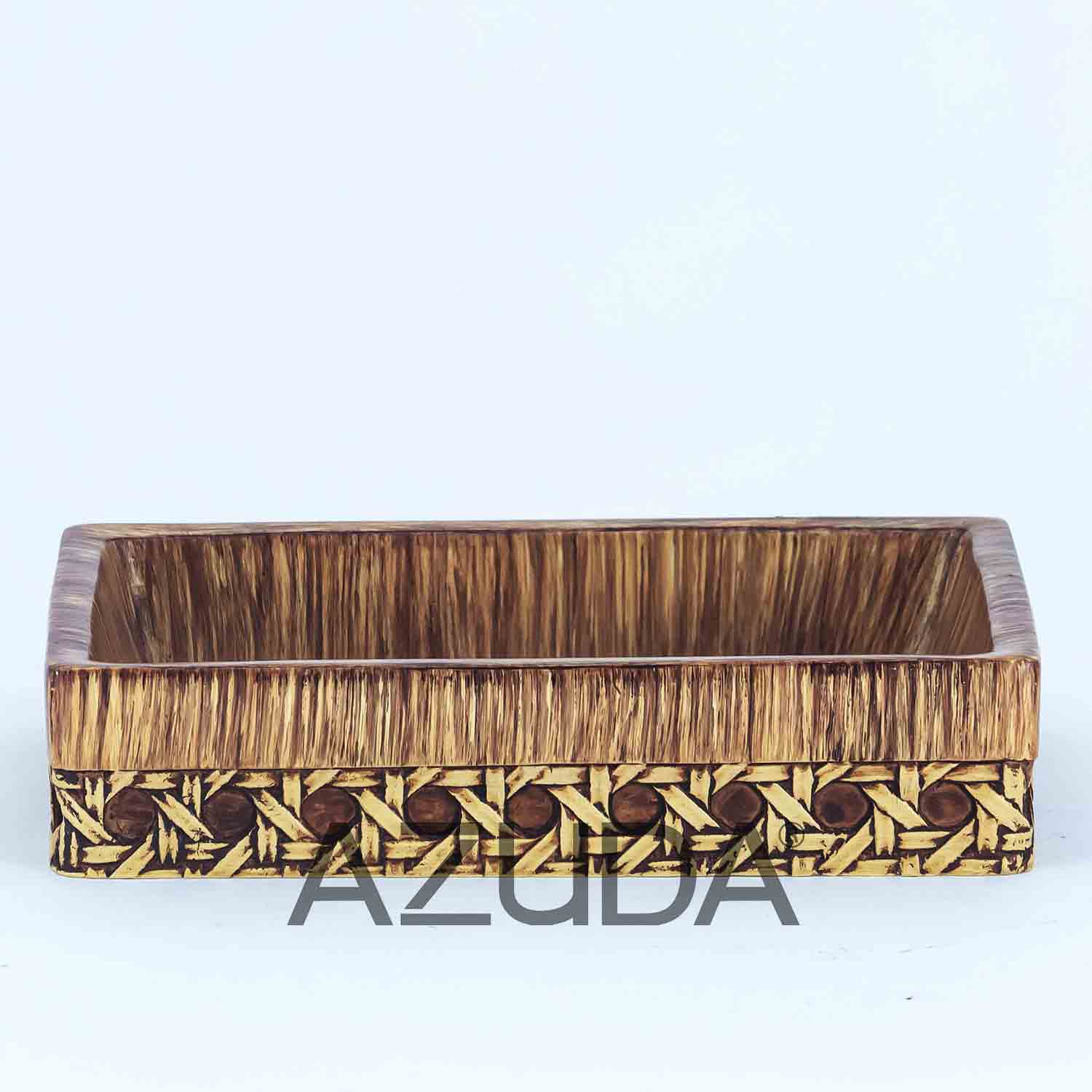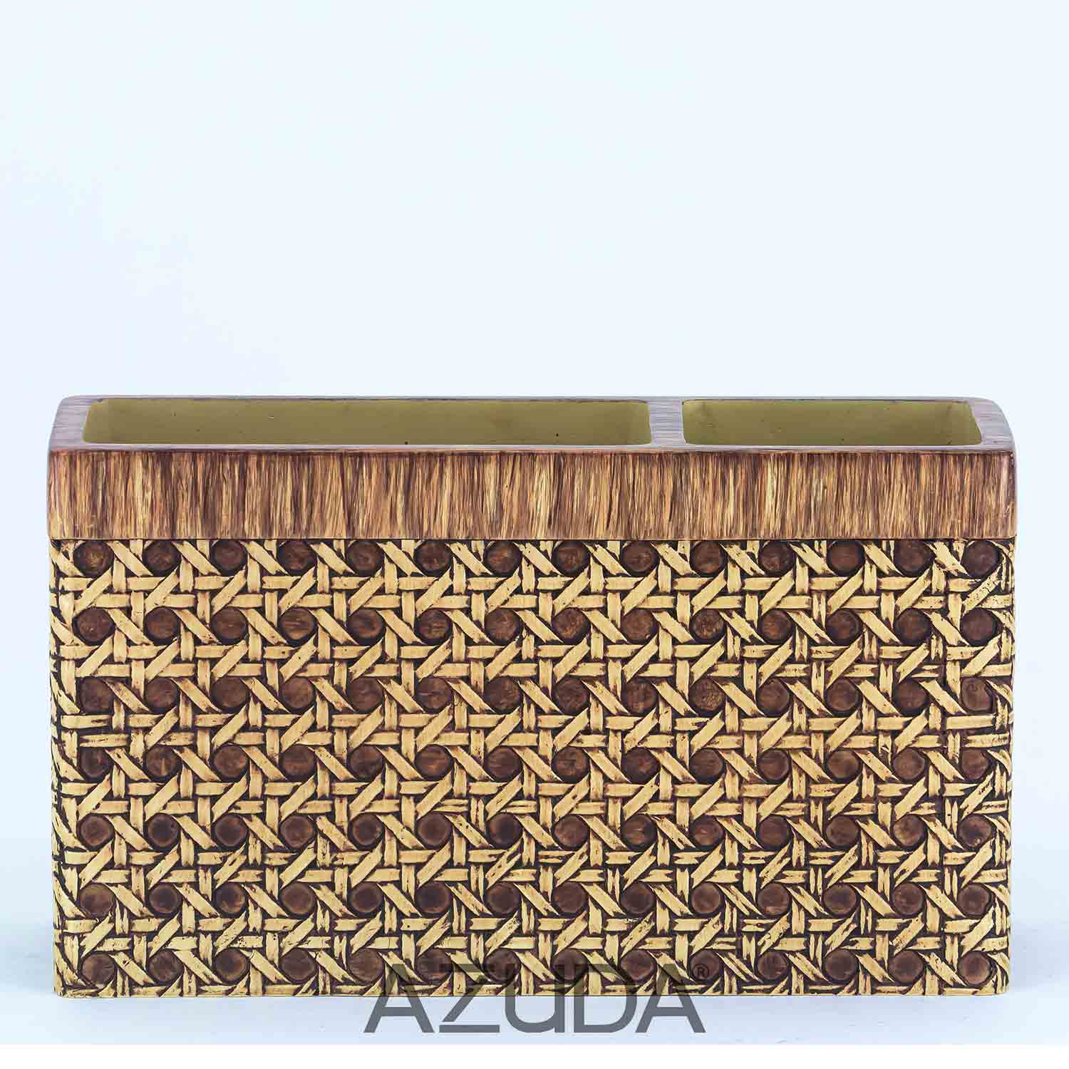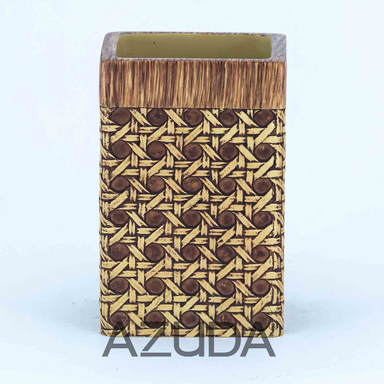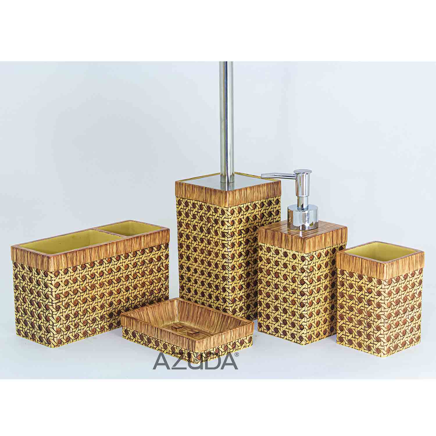 POLYRESIN BATHROOM ACCESSORY SET RATTAN DESIGN IN SQUARE
