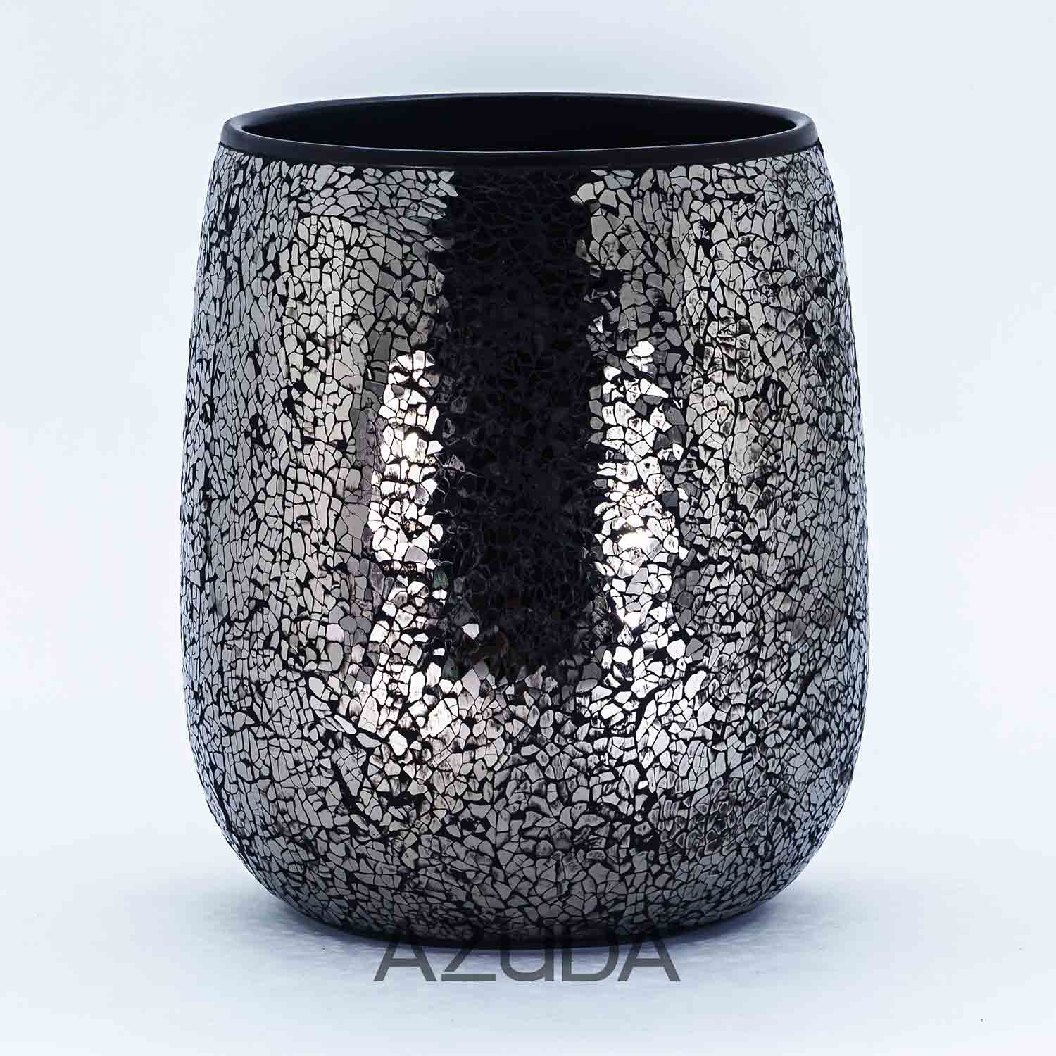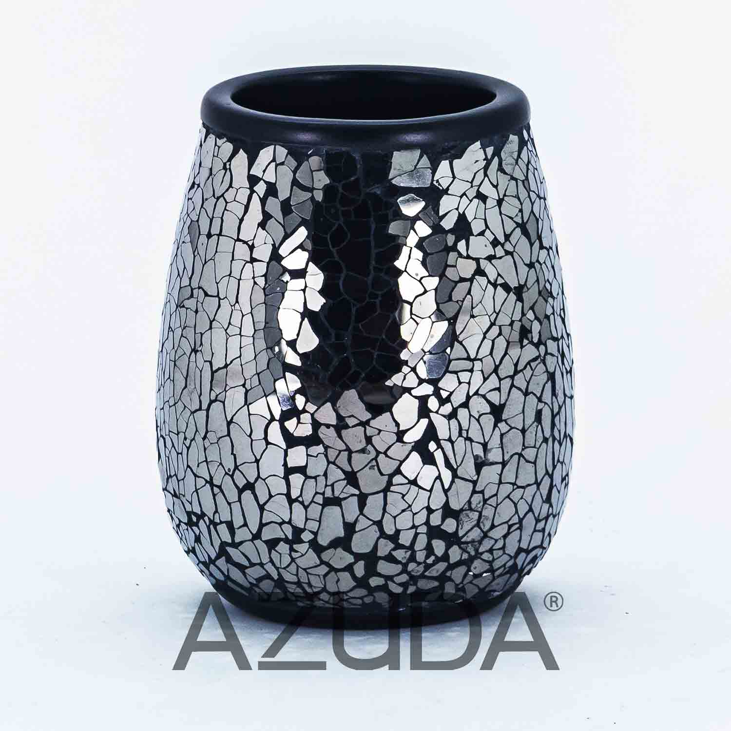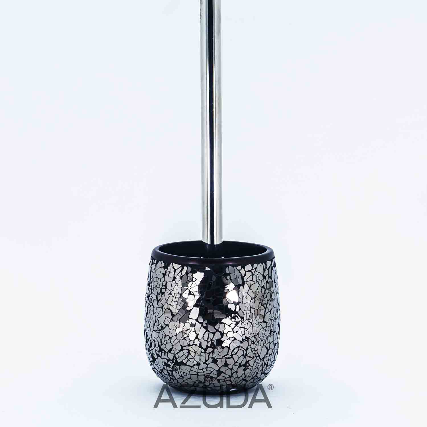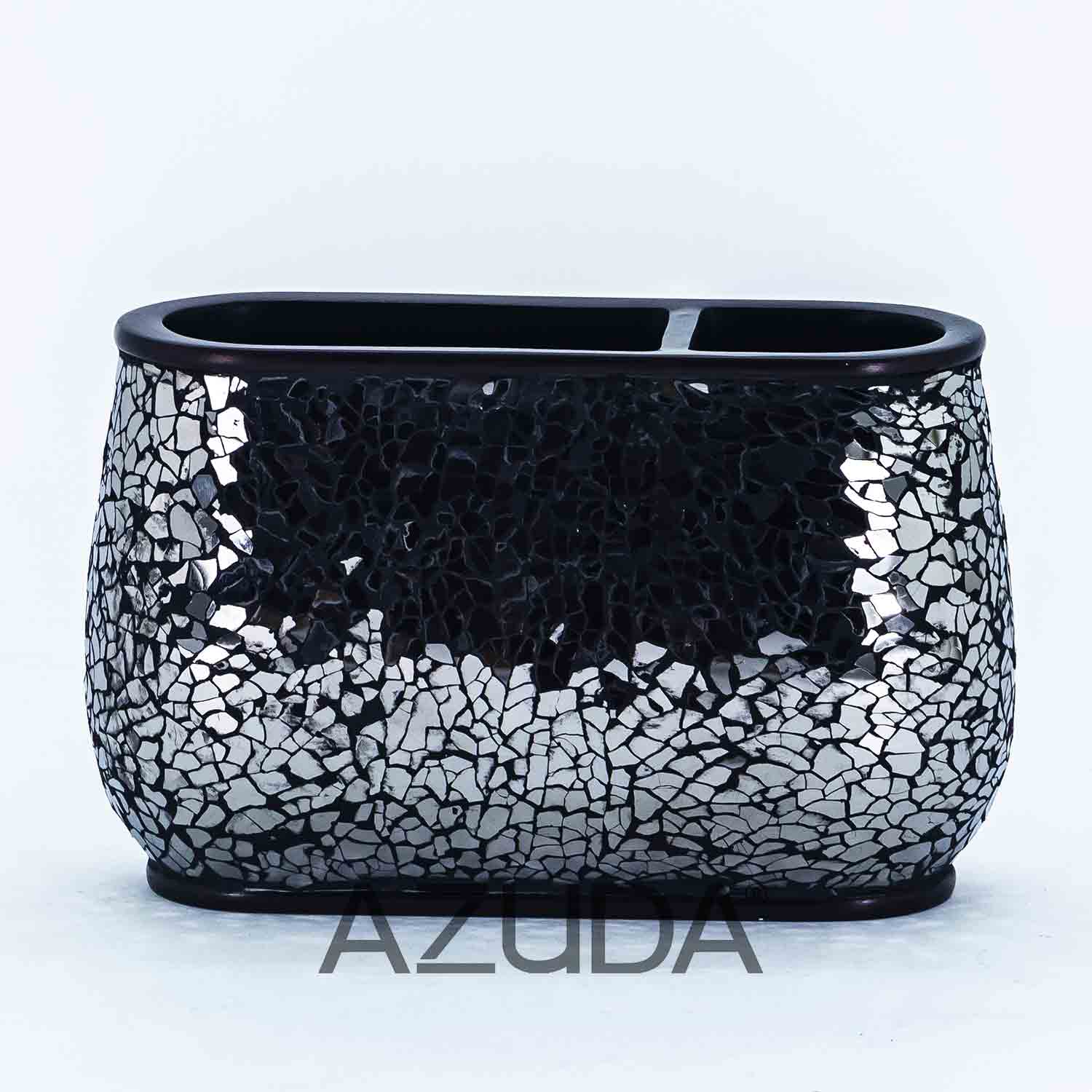 - Polyresin / Glass bathroom accessories including lotion dispenser, toothbrush holder, tumbler and soap dish. Glass fragments collage give you sparkling reflection. With these bathroom accessories, shower time can also be a visual enjoyment.