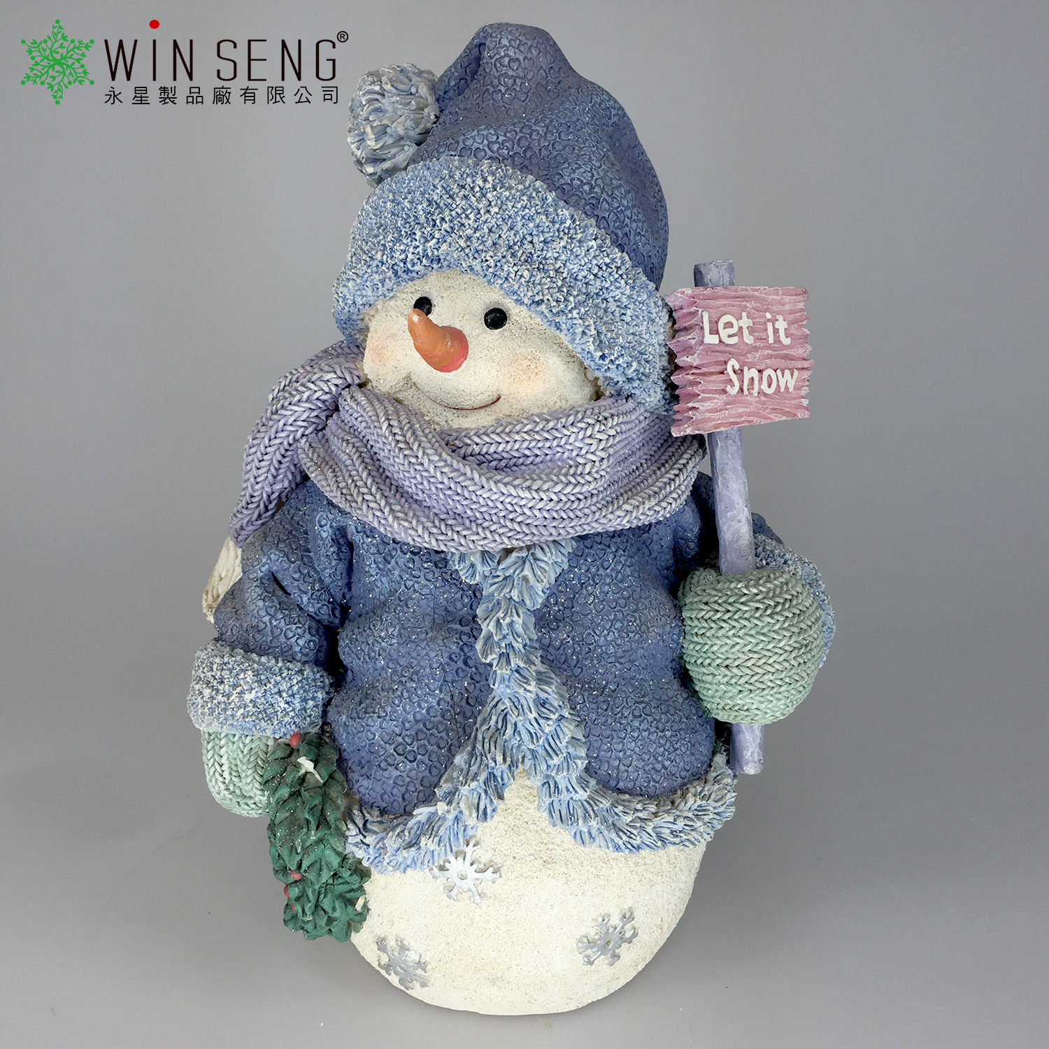 • Item Name: Polyresin Blue Snowman with Snowflake Figurine Decoration