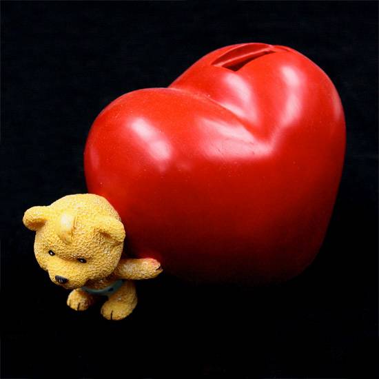 The coin bank flaunts a heart-shaped design in a vibrant red. It comes with a bear-shaped ornament in a lovely way. This polyresin coin bank is a great gift for your loved one.