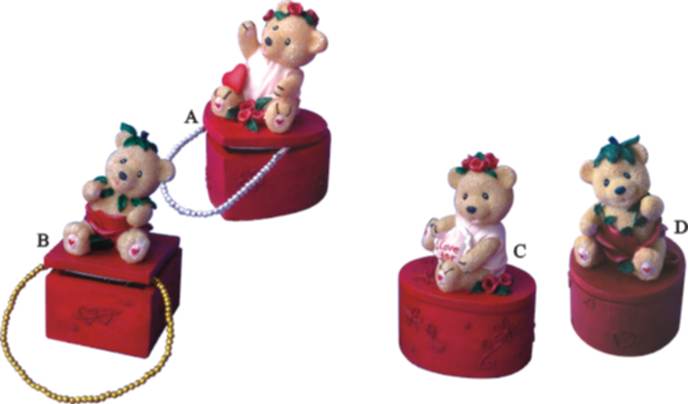 Delightful polyresin bear figure is adhered to the top of each red jewellery box, expressing a sense of cuteness. Tiny floral pattern is clearly carved on the box body to show delicacy. Users are suggested to beautify and wrap their small gifts or jewellery with the presented packaging box.
